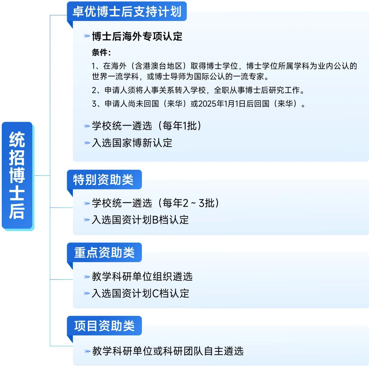 3. 重点资助类和项目资助类博士后期满考核达到要求,可根据各单位需求参加相关岗位招聘。